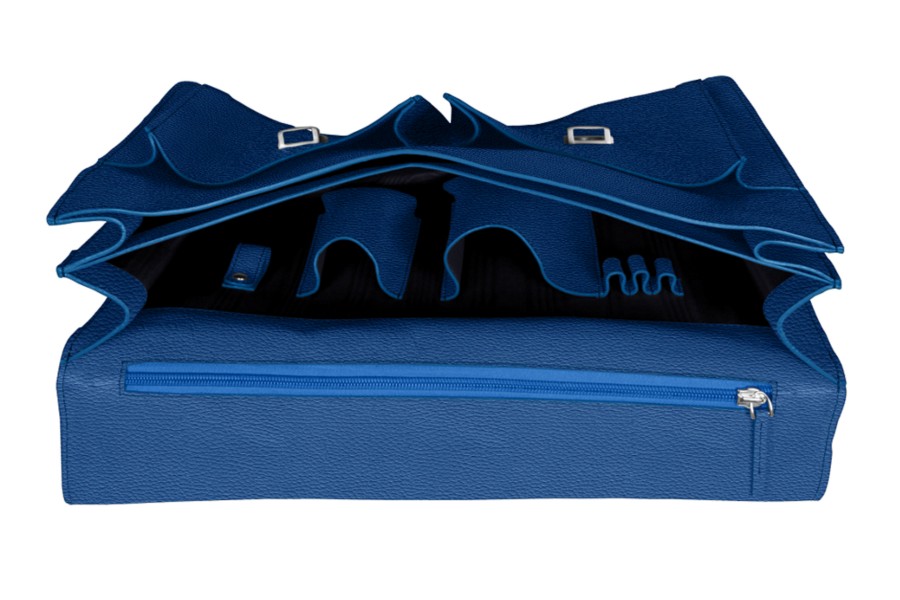 Satchel Briefcase - Royal Blue - Granulated Leather