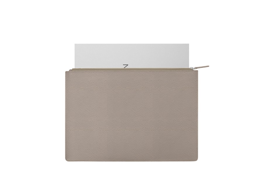 Flat document case size A4 - Light Taupe - Granulated Leather
