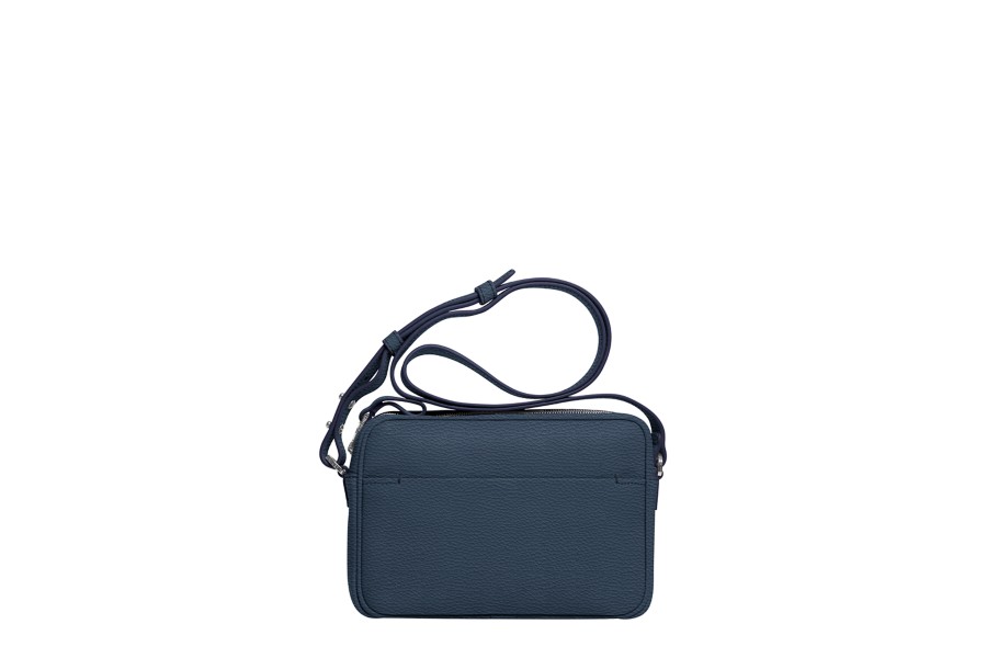Small Crossbody Bag L5 - Navy Blue-Burgundy - Granulated Leather