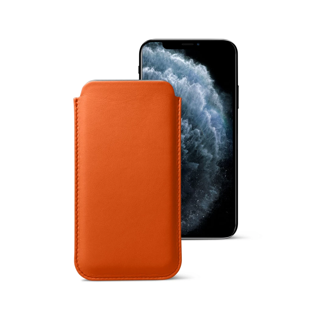 Made for the Apple aficionados, this classic case for iPhone 11 Pro is made in authentic leather coupled with high-end microfibre interior. Slim, elegant and soft, this iPhone leather sleeve is made to fit your phone perfectly. You may even leave your iPhone inside while charging it wirelessly. Furthermore, it can be made into a custom iPhone case by getting a unique engraving on the leather surface. Pick the leather & color that suit you best, and you have a chic iPhone 11 Pro leather case for your classy smartphone.