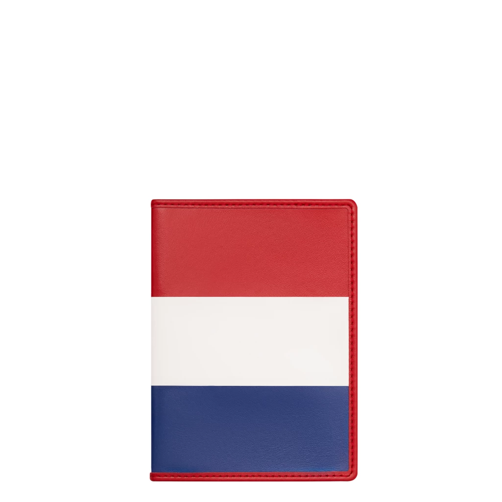 Get on the plane, flying with the colors of your country with this Dutch passport holder in leather conceived by the finest artisans with utmost precision and expertise. Its three horizontal stripes of red, white and blue colour will definitely stand out as you get through the customs with the colors of the Netherlands flag. This elegant passport cover can be customized with your initials, for example.