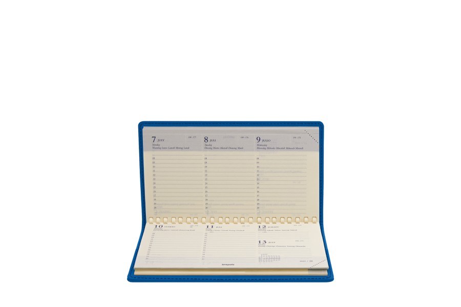 Pocket 2019 diary/organizer in full grain leather. Delivered with an Omniplan Brepols spiral-bound, week-on-two pages planning diary for the year, a phone index, a planning and world maps. Diaries start from January 1st, to December 31st