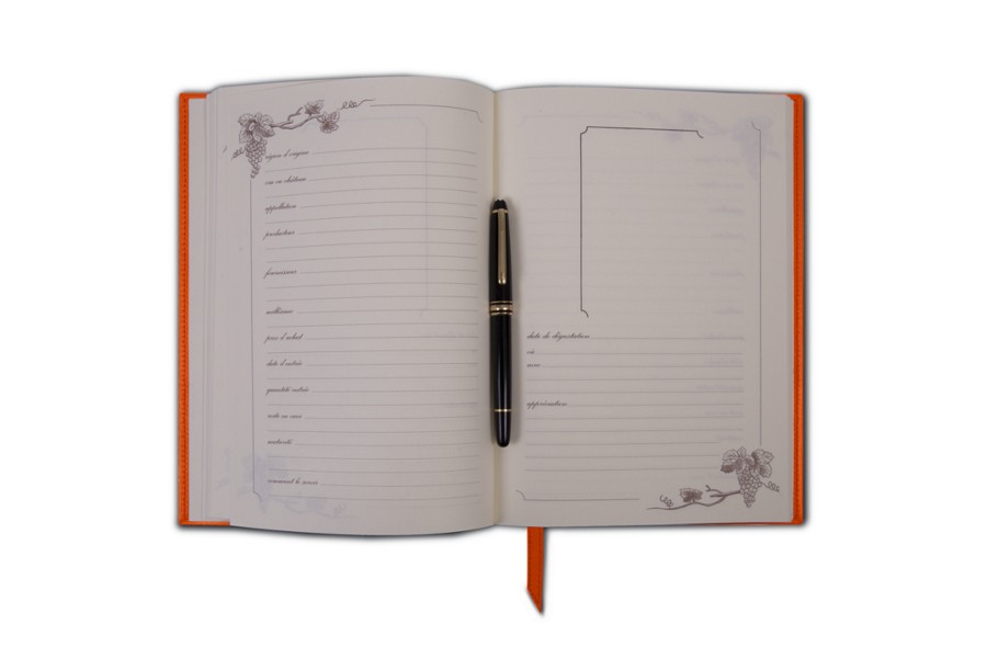 Cellar book for 77 vintage years, available in French only. This book enables you to organise your cellar efficiently, noting down all the information necessary for its good management. To the right, there are sections for the region of origin, grape variety or château, appellation, producer, supplier, year, purchase price, date of entry, quantity of entry, remainder in cellar, maturity and notes on serving. On the left, there is a space for sticking the bottle label, the date of tasting, where and with what this was done, and comments on the wine. The book has a leather strip that serves as a bookmark.