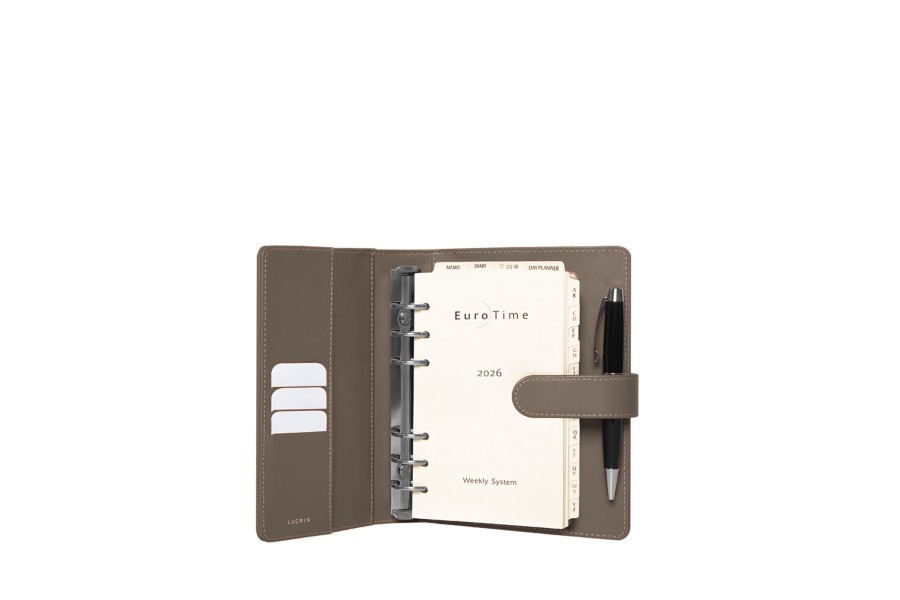 Medium 2019 agenda binder made of full grain leather with 6 nickeled rings. 3 interior pockets for credit cards. Delivered with 2019 calendar/agenda filler in 6 languages, 1 week on 2 pages / telephone index / memo.