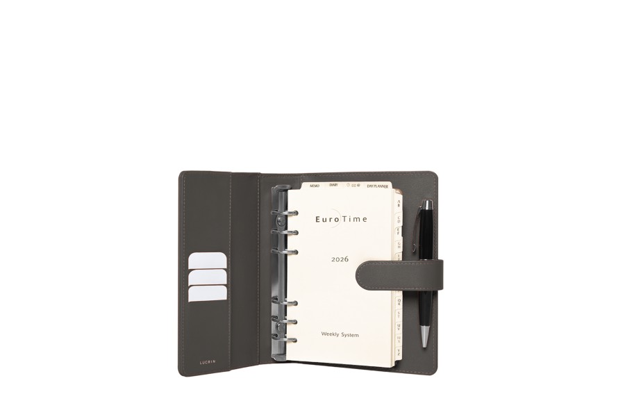 Medium 2019 agenda binder made of full grain leather with 6 nickeled rings. 3 interior pockets for credit cards. Delivered with 2019 calendar/agenda filler in 6 languages, 1 week on 2 pages / telephone index / memo.