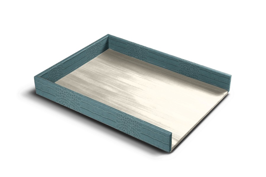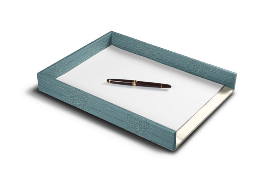 A4 Letter tray - Turquoise - Crocodile style calfskin