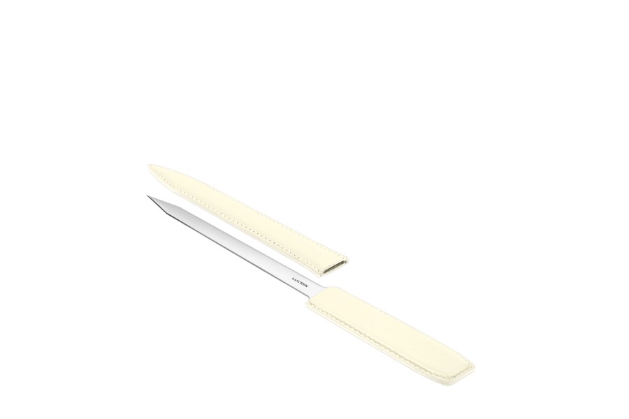 This letter opener will be a favourite of lovers of beautiful objects and accessories. This paperknife combines perfectly elegance and practicability. It possesses a blade of 5.3 inches in silver-coloured brass that allows you to open up envelopes with utmost ease and accuracy. Once you are done using it, this paper knife is kept in its leather sheath, like a sword! Thanks to the leather-covered handle you can be sure that you have a nice grip when using the letter opener.