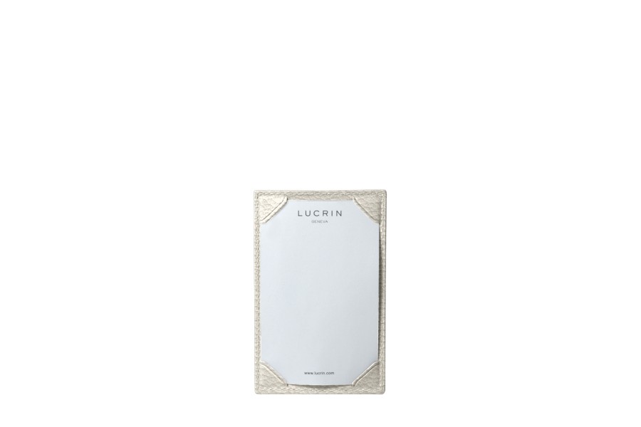 This writing pad, which is really not bulky in terms of size, is ideal to jot down notes, thoughts or phone numbers. On one side, you have the basic writing pad, where the sheets are held by 4 notched corners. On the other side, you have a slit in which you can slip in some paper refills or any card with standard credit card dimensions. Of course, all our writing pads are delivered with white LUCRIN sheets coming in some paper blocks refills.