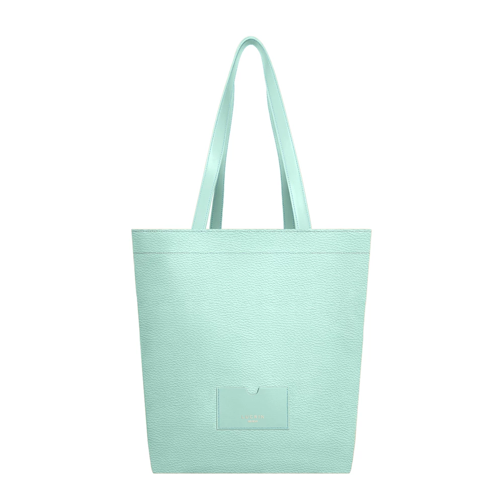 Gusset Tote Bag Pastel Aqua  - Pebbled Leather